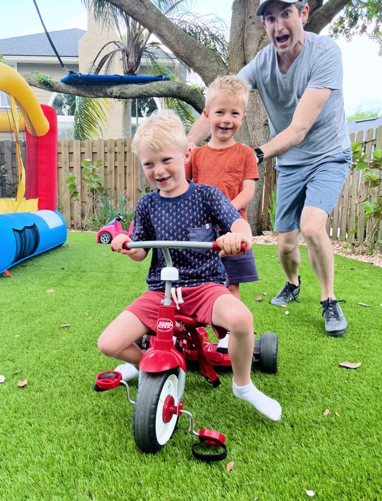 We always stay with my parents when we visit Jacksonville Beach but we spend a lot of our time at Leslie and Ross’ place, too! They recently updated their backyard and it’s the best spot for our crew because everyone can run and play outside in their fenced-in yard which is ideal with little ones in the mix.