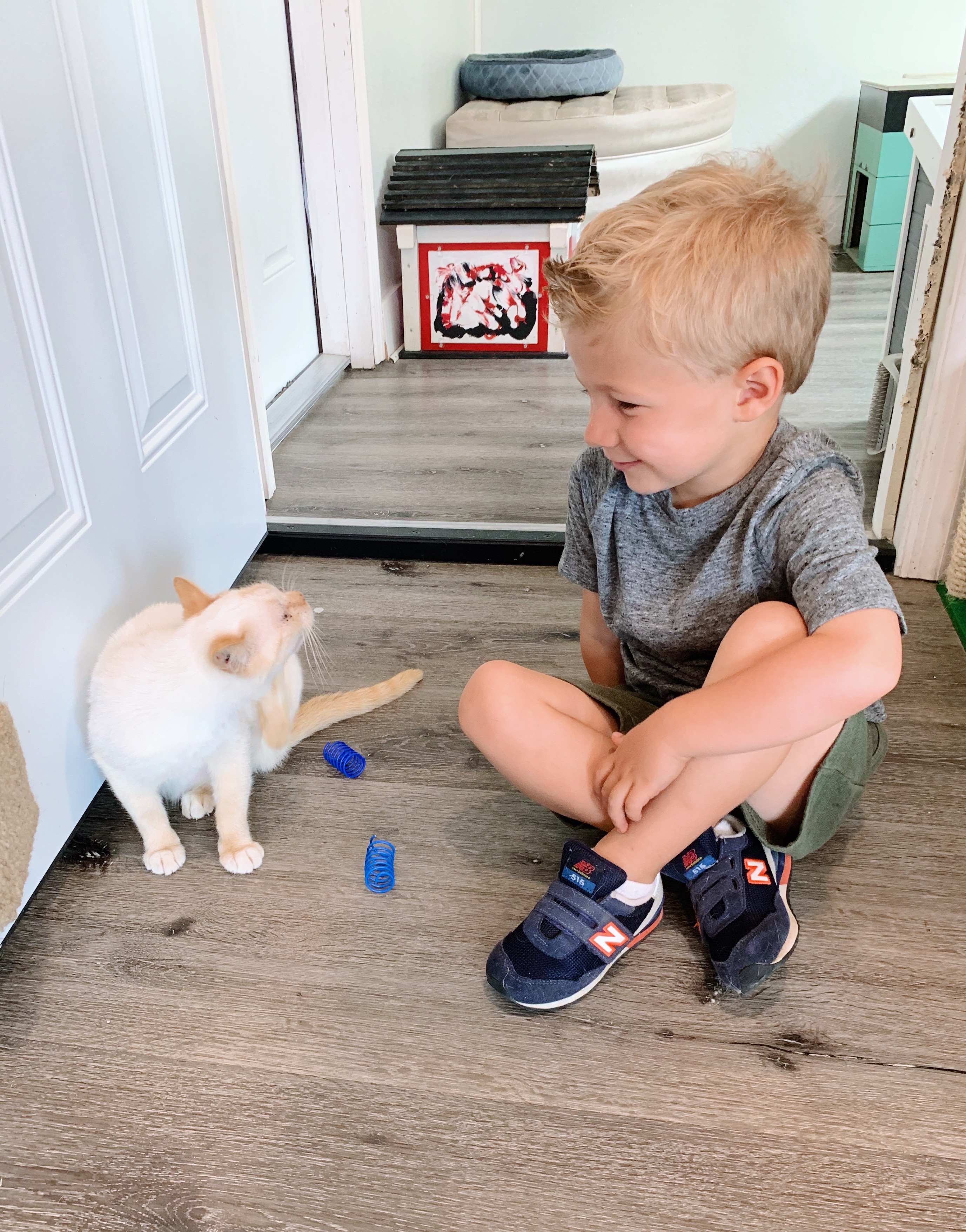 Chase fell in love with a black cat with one crusty eye named Licorice and she really took to him and leaned into his gentle scratches. I actually took Chase back to visit Licorice two days later during Rhett and Ryder’s nap time because he talked about her so much after our first visit.