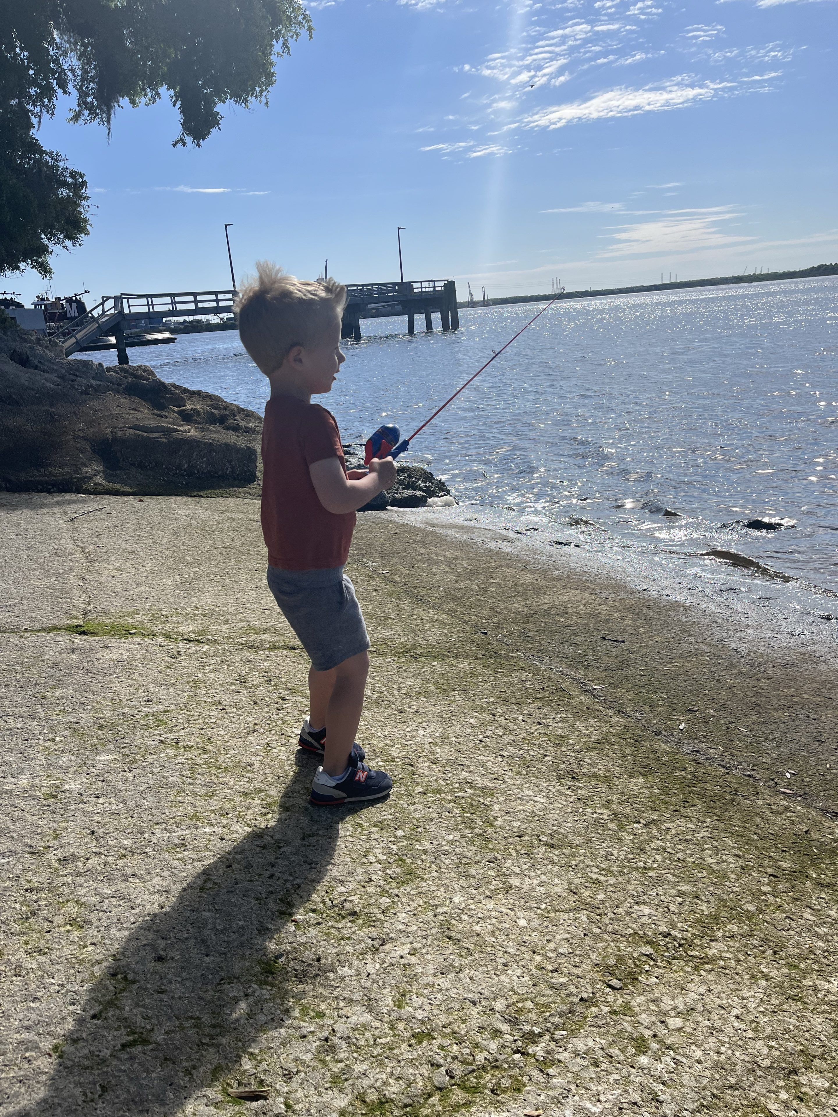 Ryan and I took the big kids fishing to two different hot spots one morning while we were away and I’d love to report back and tell you guys we caught a ton of fish but we came up empty handed. Well, technically we caught two crabs which thankfully saved the day and thrilled the boys!
