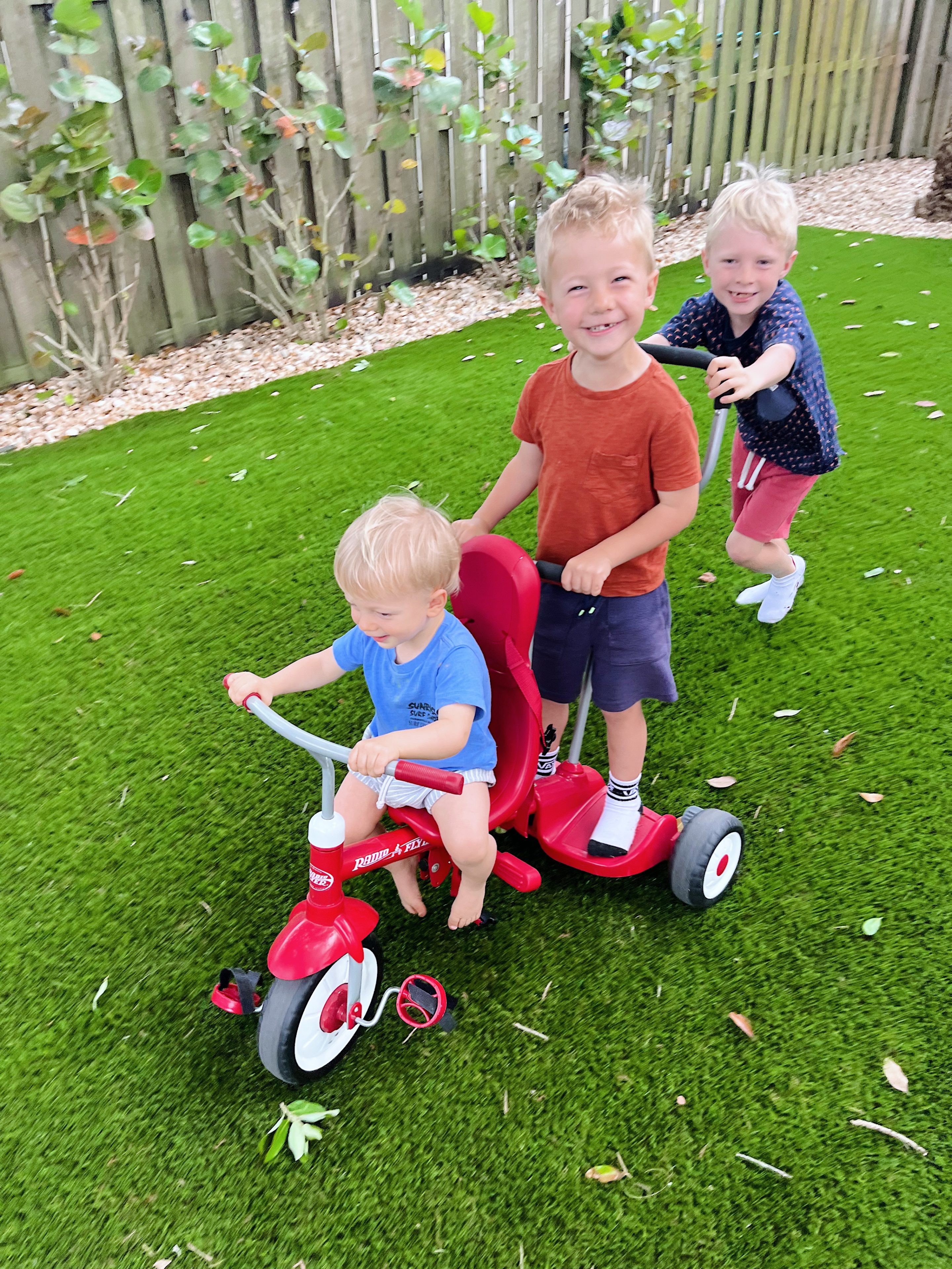 We always stay with my parents when we visit Jacksonville Beach but we spend a lot of our time at Leslie and Ross’ place, too! They recently updated their backyard and it’s the best spot for our crew because everyone can run and play outside in their fenced-in yard which is ideal with little ones in the mix.