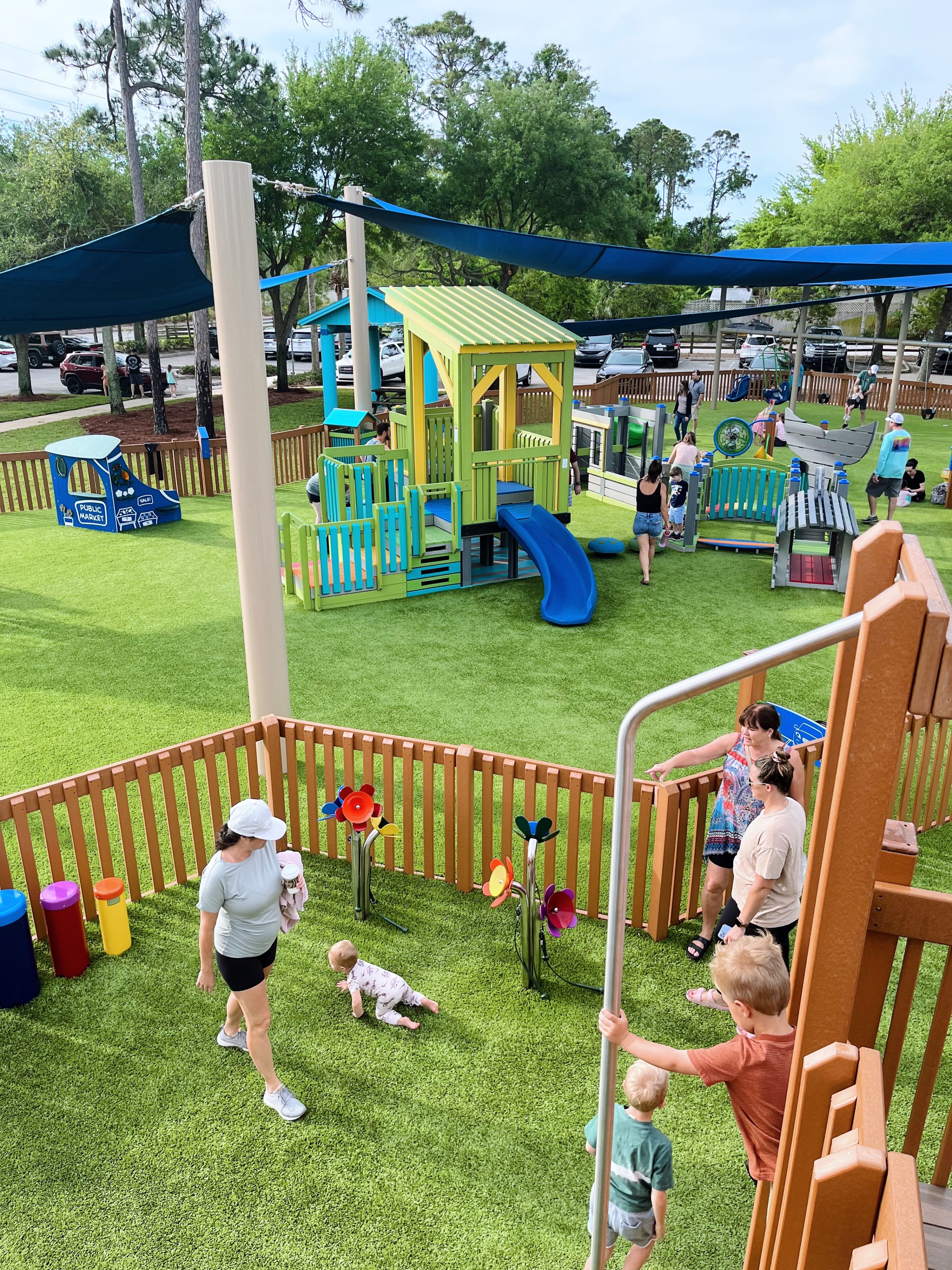 Sunshine Park is one of our favorite parks in the Jacksonville Beach area and it recently got quite the update! The park re-opened on Friday and we visited it for the first time with my nieces, Leslie and Ross on Saturday morning. The entire park is built on turf which is just the BEST and it made me wish more parks would go that route because it was soft and clean and the kids love it!
