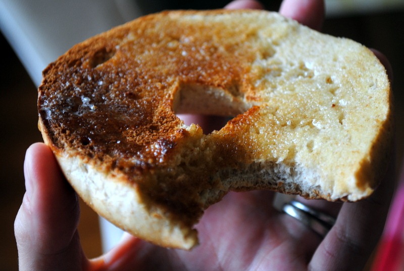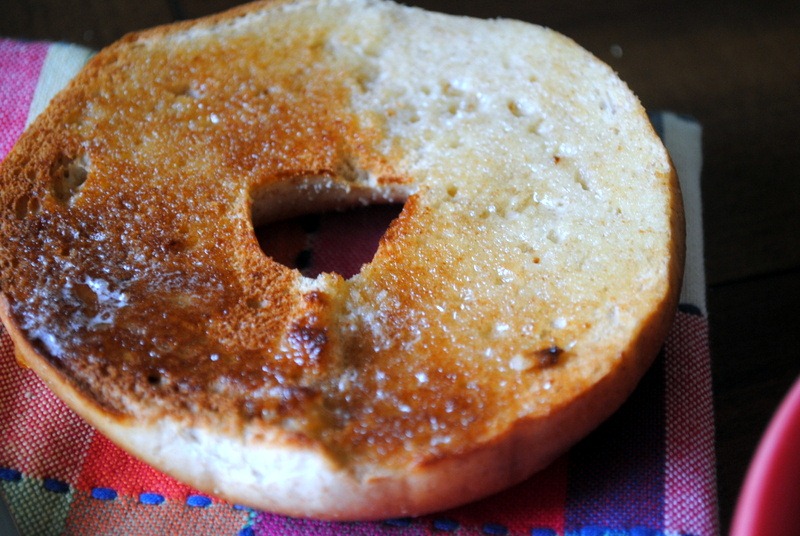 On the side Ryan and I split a a toasted honey wheat Thomas’ bagel topped with Smart Balance and a bit of honey.