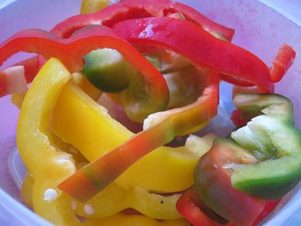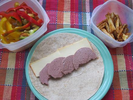 The lineup included two sliced peppers (one yellow and one red with specks of green), parsnip fries and a liverwurst and Muenster cheese roll up.