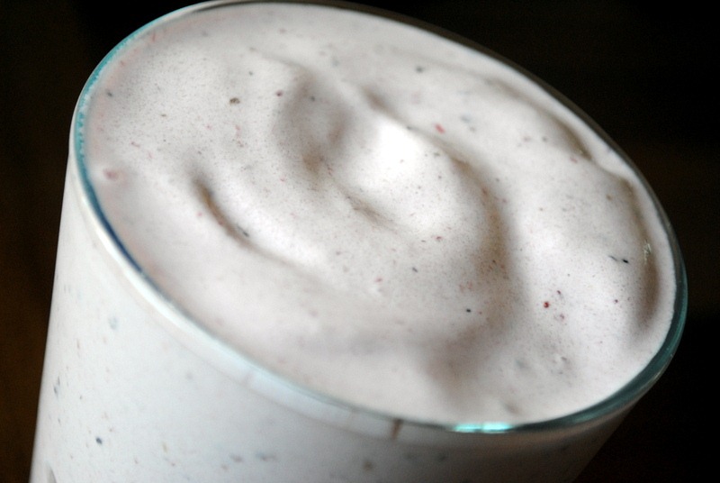 Yum, that smoothie looks great! I had a really delicious smoothie today with whey protein, skim milk, blueberries, and mango. Yummm!