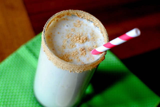 2. Dip the top of a glass in graham cracker crumbs. Pour smoothie into glass and garnish with an additional sprinkling of graham cracker crumbs.