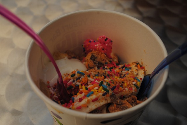 Ryan and I decided to share a big cup of dulce de leche and cheesecake swirl frozen yogurt that we topped with lots of different goodies.