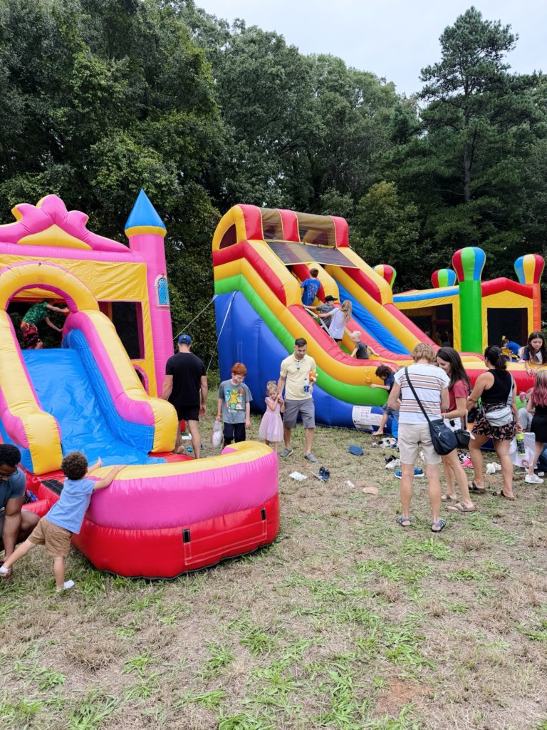 After soccer time, we made our way to a small fall festival where the boys had fun bouncing in bounce houses, participating in a scavenger hunt and picking out small pumpkin prizes once their scavenger hunt cards were complete.