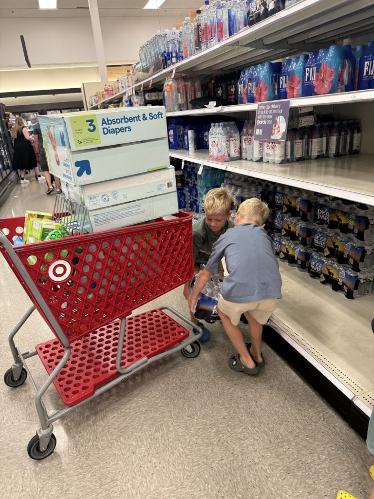 Sunday morning we began our day with the early morning church service before popping into Daylight Donuts for a sweet treat. We then took the boys to Target to fill our carts with supplies to bring to a local business that was collecting items to bring to areas of Western North Carolina that were deeply impacted by flooding caused Hurricane Helene.