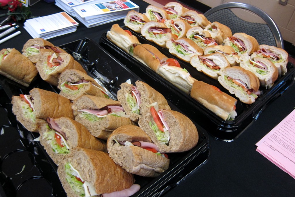 Once lunchtime rolled around, a speaker from the American Cancer Society spoke to everyone about the importance of proper nutrition and exercise while we ate subs donated from Subway.