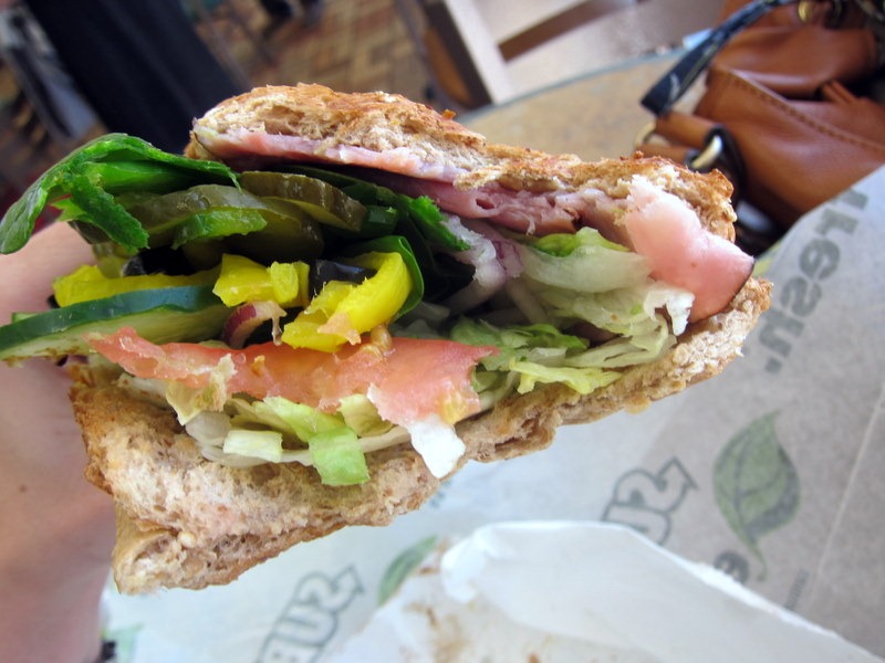 I know it sounds kind of silly, but eating this sub alone in Subway was kind of nice! I usually eat lunch while working at my desk, surrounded by distractions and sitting in a booth just enjoying a sandwich without any stimulation was oddly relaxing. When was the last time you sat down to eat a meal without distractions? I bet it has been a while!