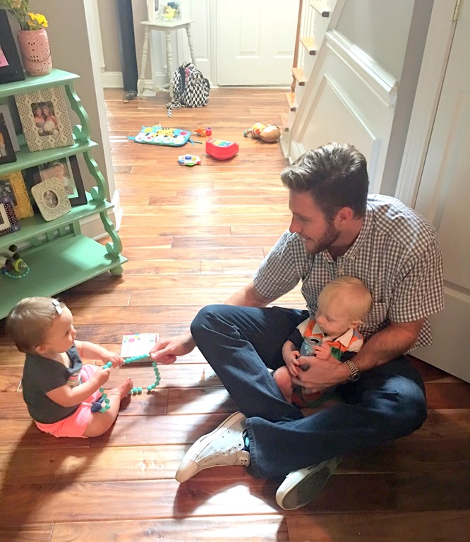 On Friday evening, Ryan, Chase and I headed over to our friends Lauren and Tony’s house for a cookout! I met Lauren through Burn Boot Camp when we realized our little ones were the same age (Lauren’s daughter Claire was born four days before Chase at the same hospital!) and it’s been so much fun watching our babies grow up together. Chase and Claire had a great time with their fellow baby buddies, Lilly and Ella, and we all enjoyed watching them play in Lauren and Tony’s play room.