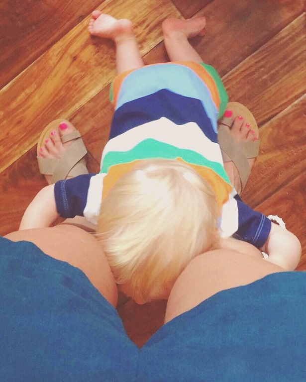 (Pic from my Instagram – Chase is officially in the leg-grabbing stage!)