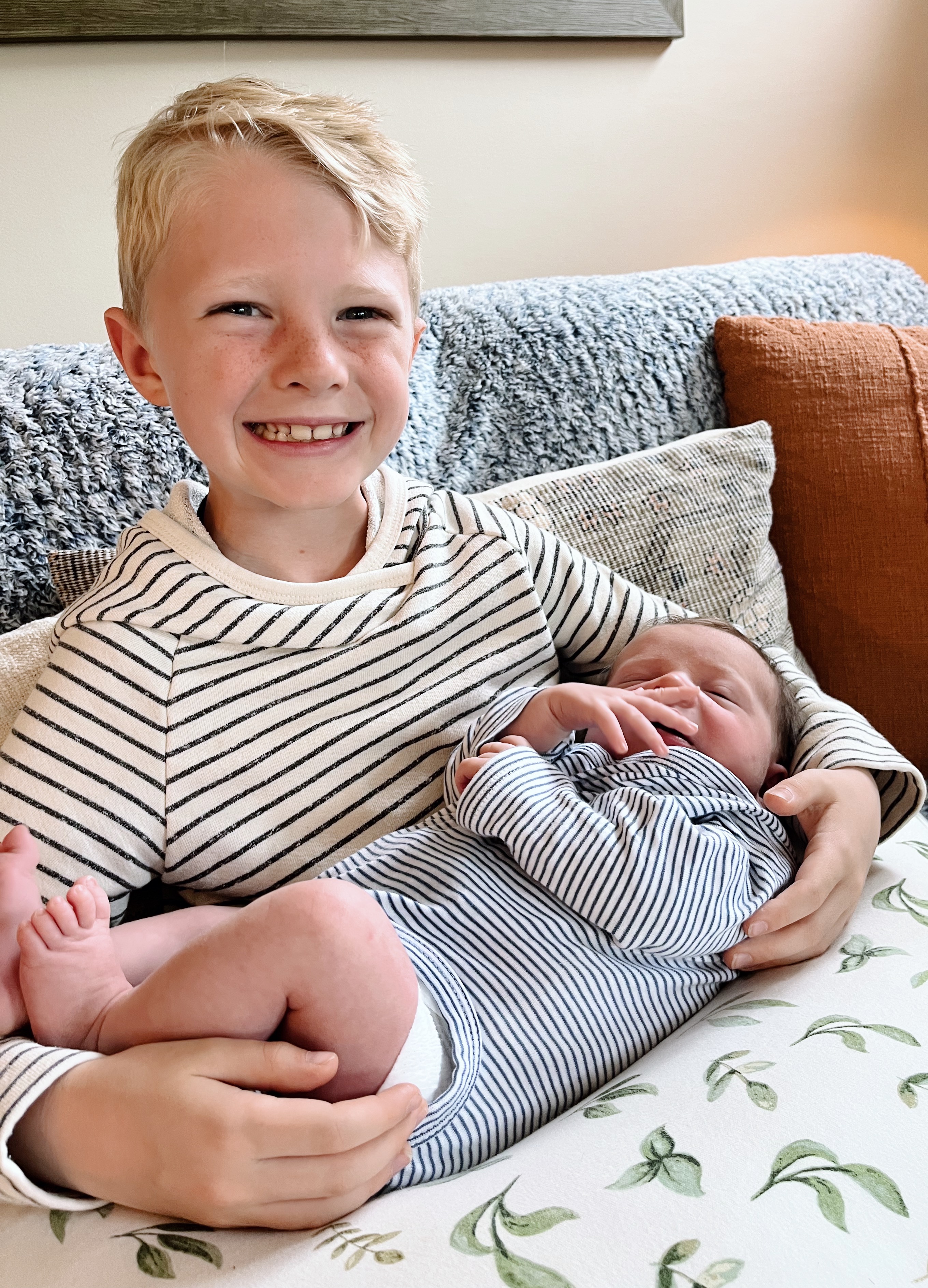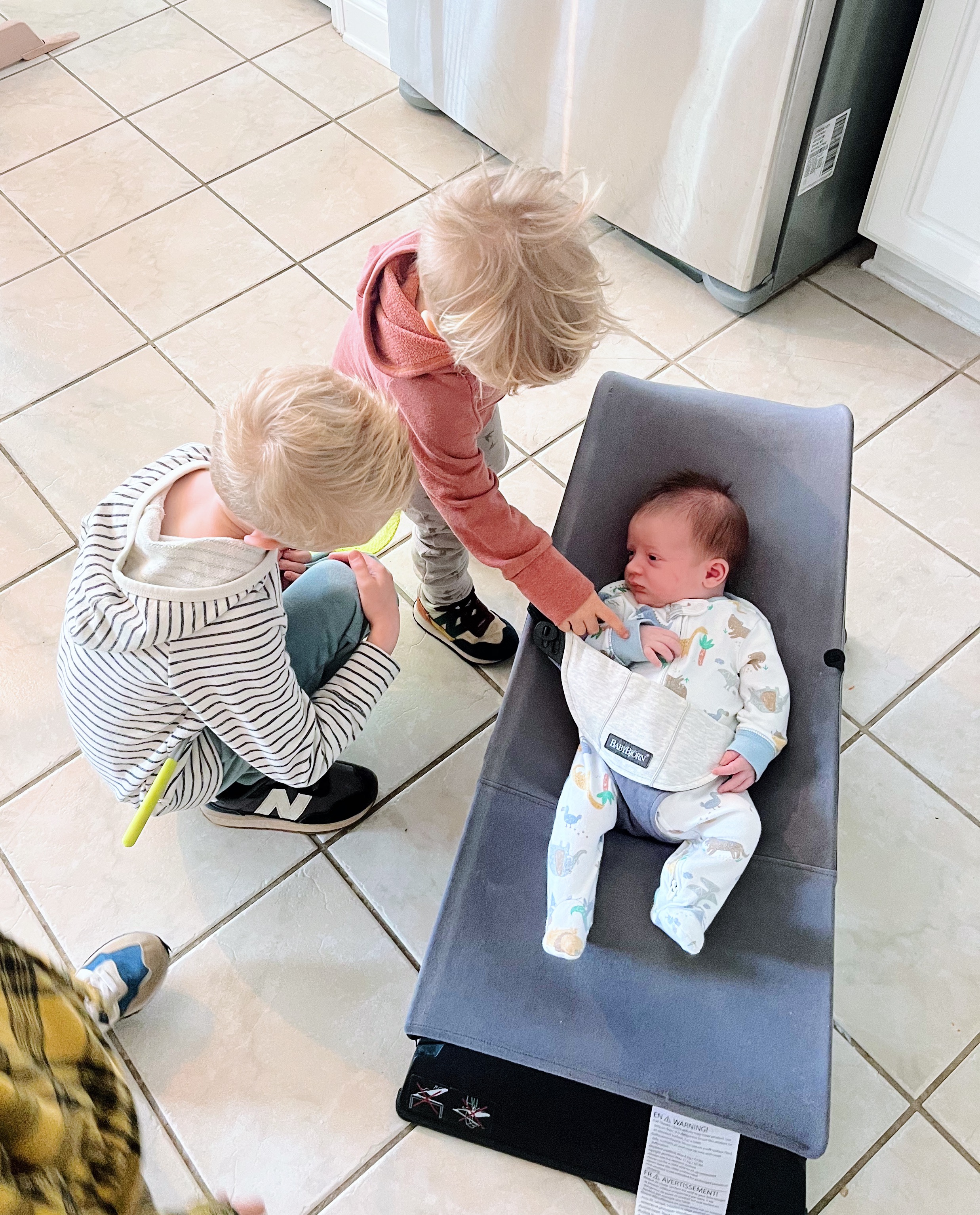 Luke is the first boy born into my sister’s family and our boys’ first boy cousin! When Leslie first told us she was pregnant, we all chatted about how unique it would be if Leslie and Ross had three girls while Ryan and I have three boys. Of course we were thrilled for another baby — boy or girl; pregnancy loss has taught me to never for one second take pregnancy and healthy babies for granted — but there was a little part of my heart that skipped a beat when we found out Leslie and Ross were having their first little boy! Little boys are riiight in my wheelhouse and it was so wonderful to meet their third baby last weekend.