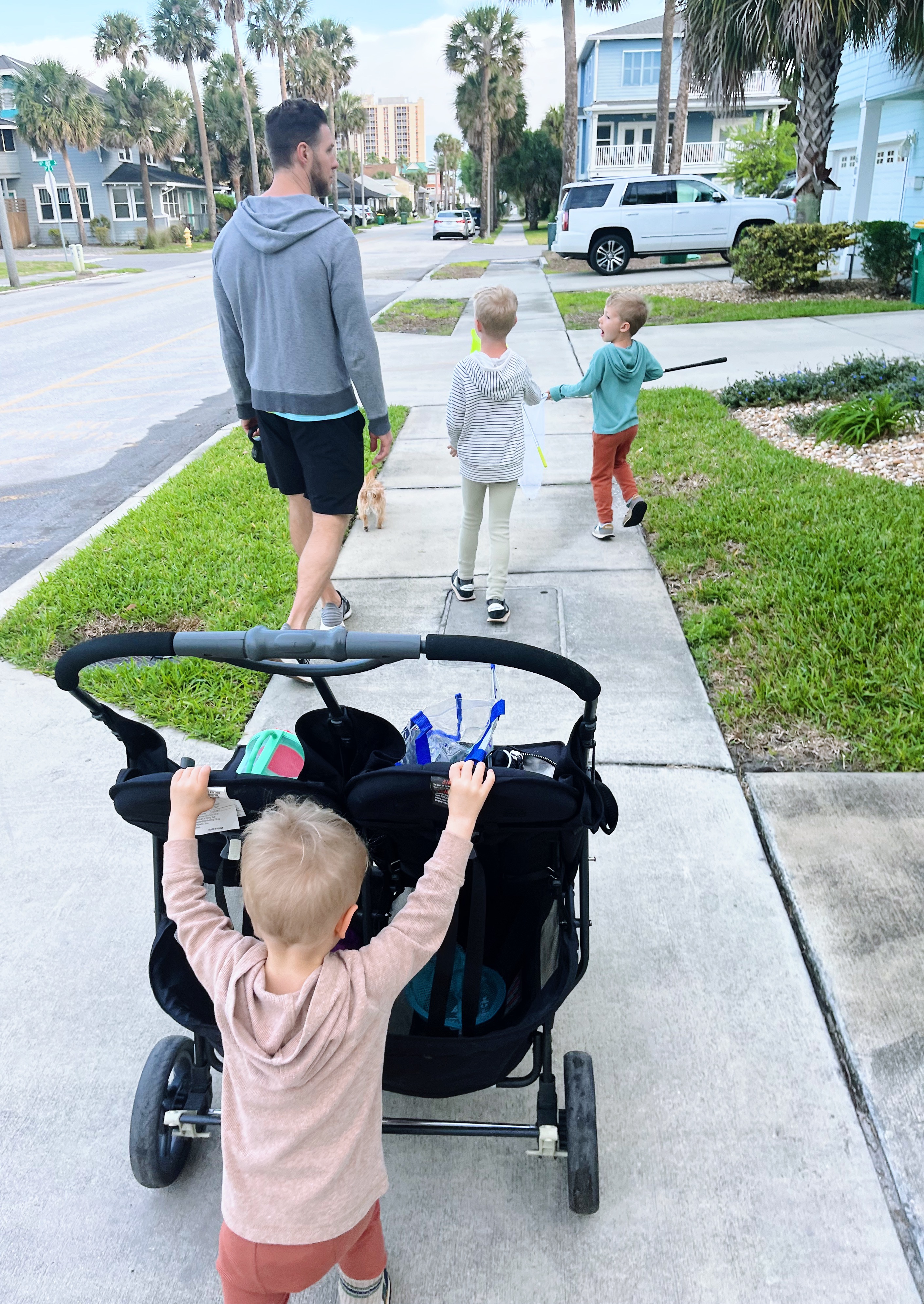 (Please note the double stroller with zero kids in it. If that doesn’t sum up life with a toddler or two, I don’t know what does.)