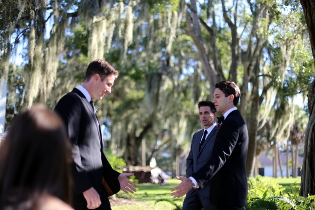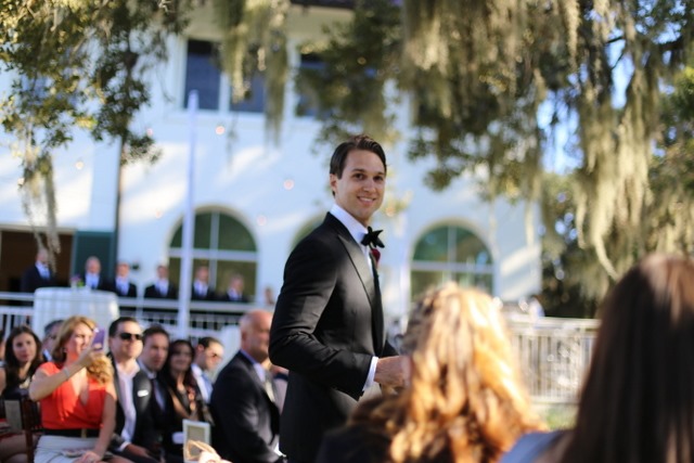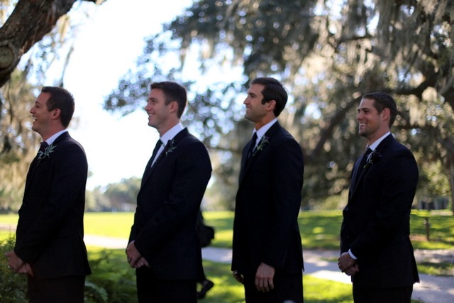 He shook the hand of each of his groomsmen as they joined him to wait for his bride.