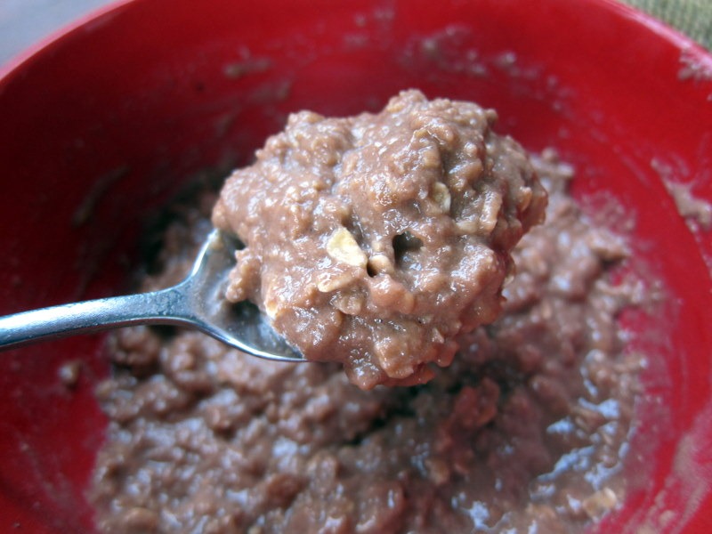 Mm..that oatmeal looks like batter for a chocolate peanut butter no bake cookie, which is MAYBE my favorite cookie ever. 🙂