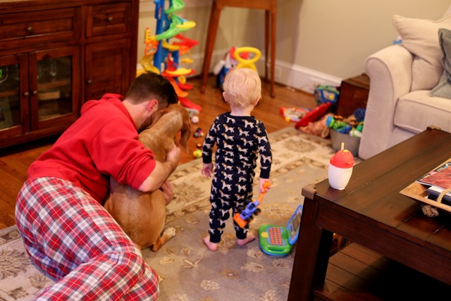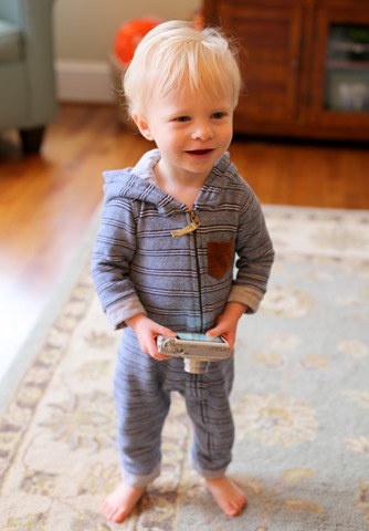 We ended up taking Chase upstairs for a bath earlier in the evening thanks to a dirty diaper issue so he was fresh and clean and in his jammies for our usual round of evening playtime!