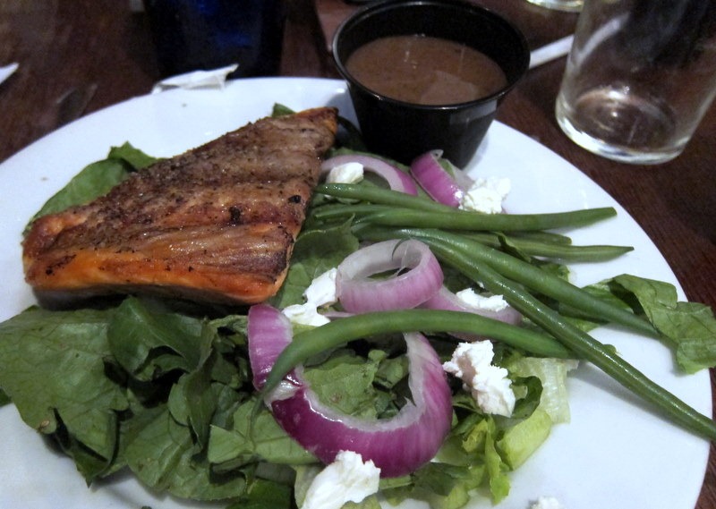 Ryan and I ate a lot of food throughout the day , so I wasn’t extremely hungry when we sat down to dinner and opted for a salmon salad with goat cheese.