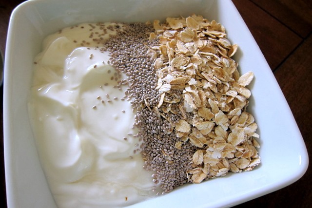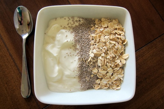 Before the photo shoot, I had a quick breakfast of Greek yogurt, raw oats and chia seeds.