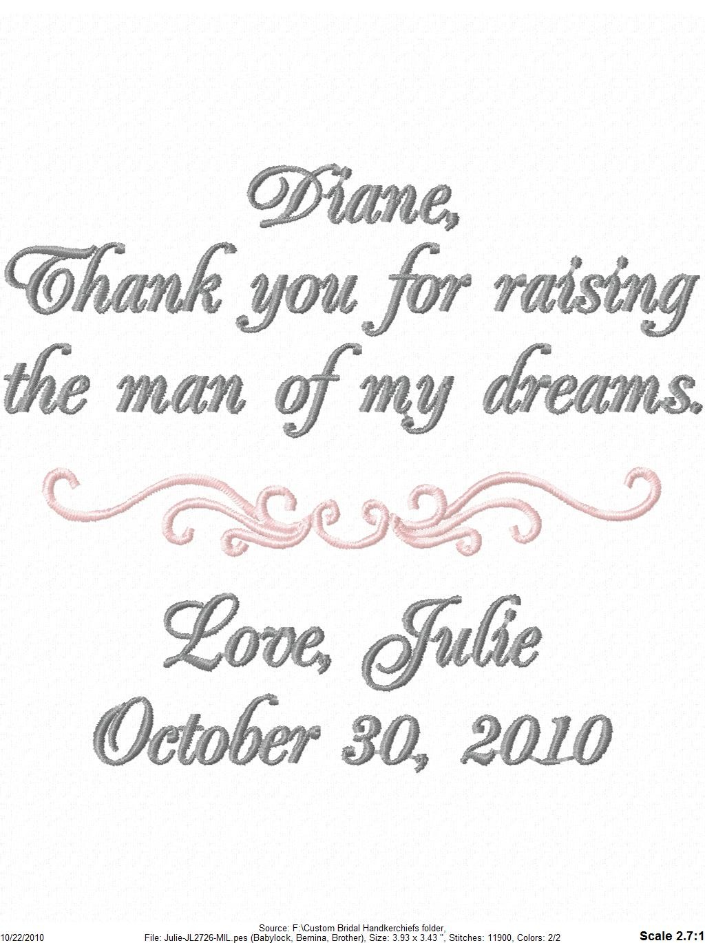 Congrats!! Your handkerchief for Ryan’s mom made me tear up. That is adorable.