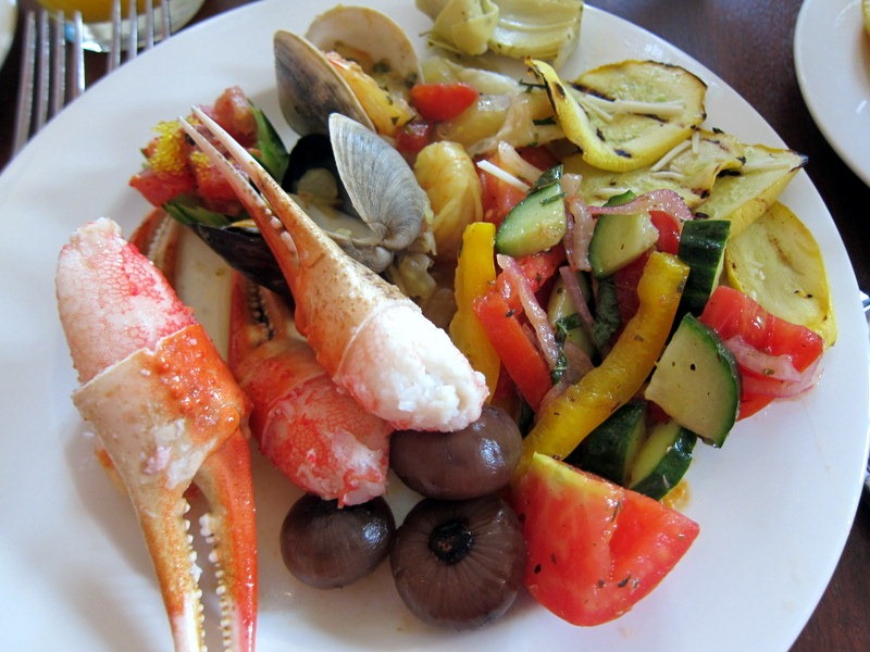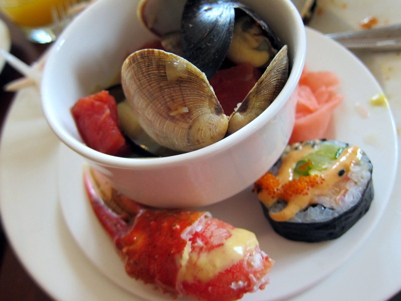 I filled my plate with crab claws, sushi (I ate two pieces before snapping the picture), clams and vegetables. The crab claws were easily the highlight of the meal.