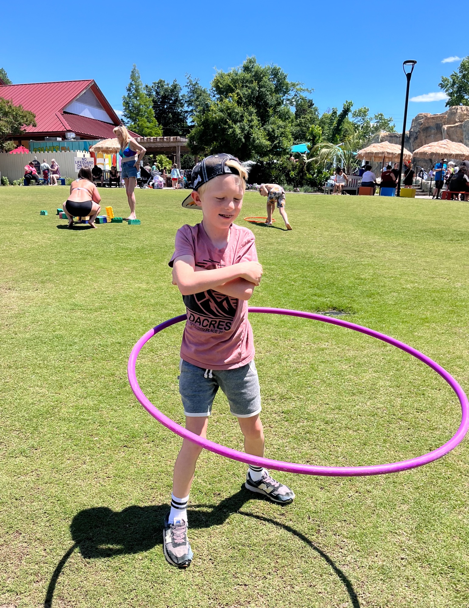 He can hula hoop for a LONG time and easily did it for 5 minutes straight until he was ready to move onto the next thing. Who knew!? I, on the other hand, could not for the life of me get the hula hoop to stay above my hips for more than 10 seconds. Apparently that skill died with my 20s.