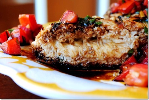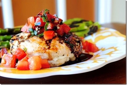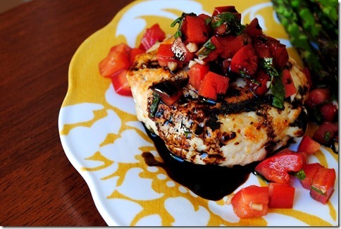 I can’t tell you how insanely yummy it tastes with the syrupy-sweet balsamic glaze and bruschetta made with fresh tomatoes and basil. I just love this flavor combo – it screams “SUMMER!”