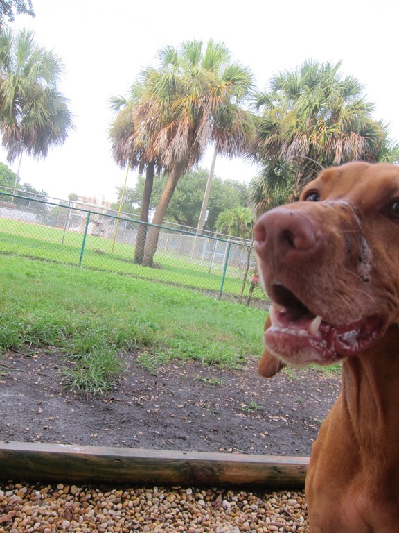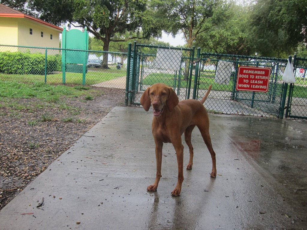 Around 4 p.m., we thought the rain let up enough to take Sadie to the nearby dog park.