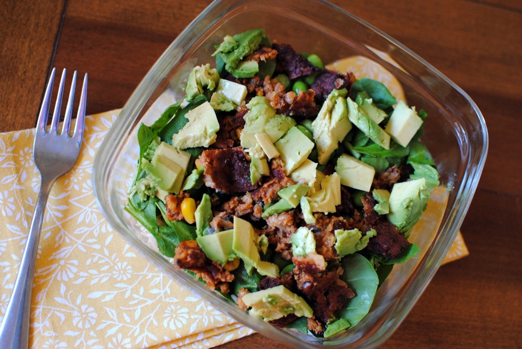 That salad looks so good! I need to remember to stock up on things like frozen edamame and veggie burgers for this very reason. My go-to quick lunch is usually leftovers from the night before.