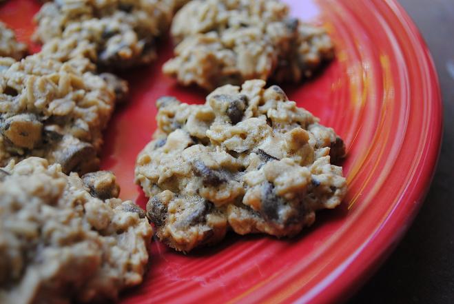 (The cookie pictured is one of my oatmeal almond chocolate chip cookies.)