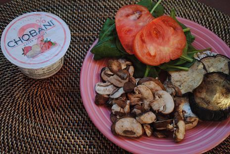 The supporting cast included Portobello mushrooms and a cup o’ strawberry banana Chobani Greek yogurt. (Side note: Have you heard that Chobani now has mango-flavored Greek yogurt!? I gotta try this soon!)