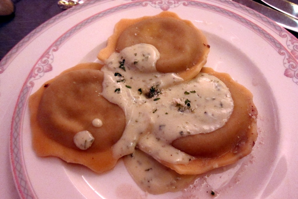 Following the maid of honor’s speech, guests were served a three course dinner that began with a mushroom ravioli appetizer.