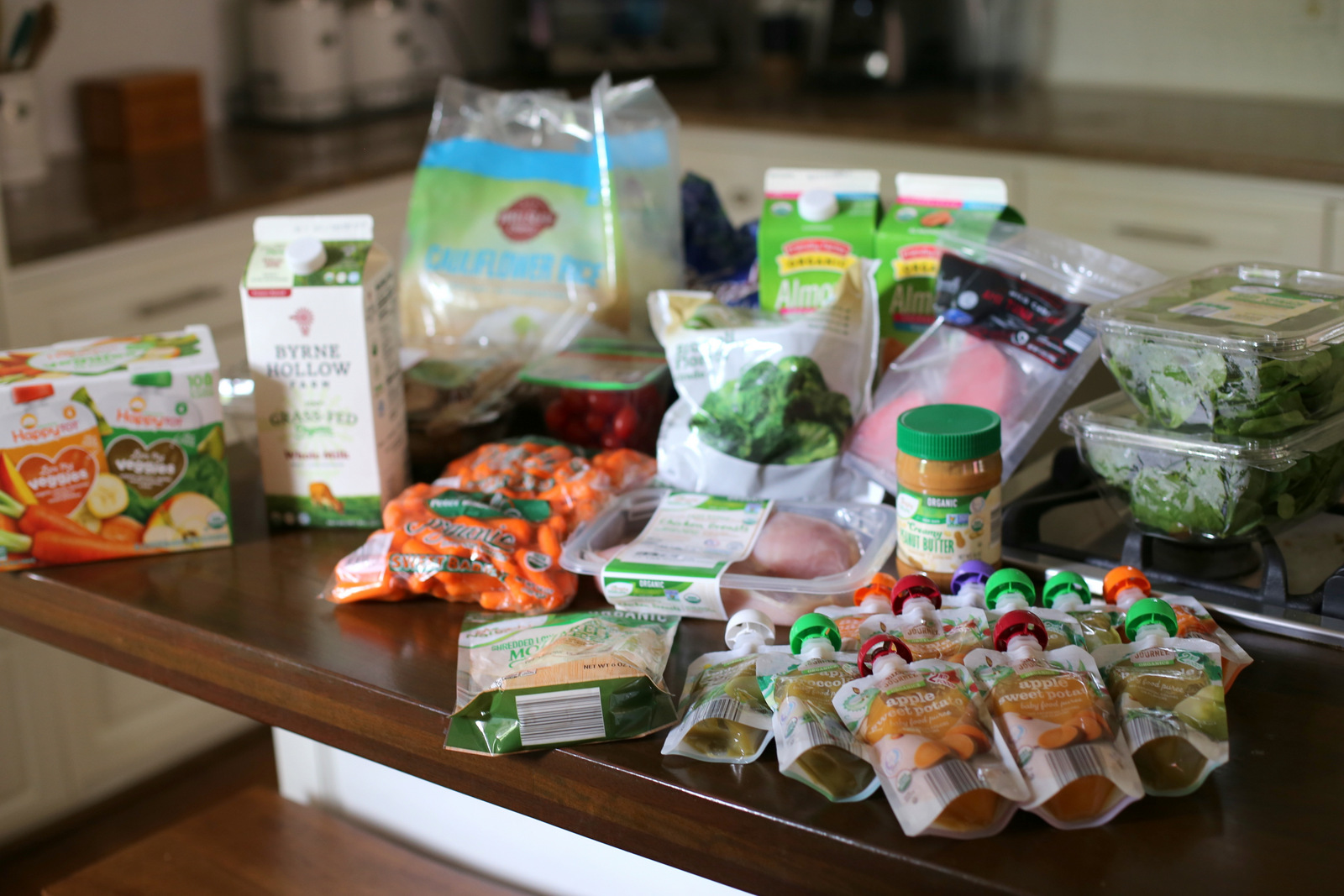 I worked up until Ryder began to stir and my Instacart deliveries arrived. (Side note: I LOVE the way my Instacart membership lets me order from multiple stores with no delivery fee as long as I hit a $35 minimum. This haul came from BJ’s and ALDI.) I set Ryder up in his high chair with his lunch while I put the groceries away and then we headed off to pick Chase up from camp.
