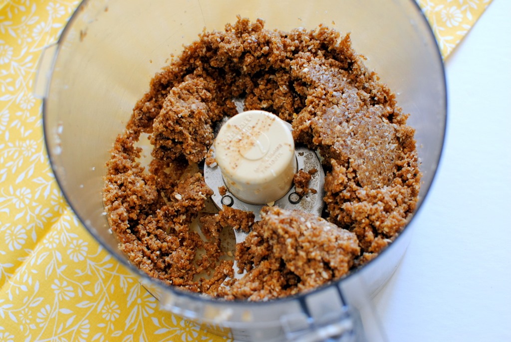 - Pulse until a thick “dough” is formed. (Depending on the consistency of your nut butter, you may need to add a little more to get everything to stick together.)