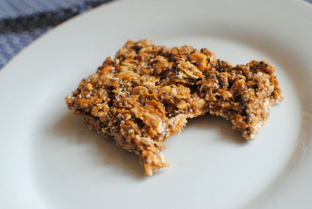 I threw together this creation in five minutes by combining crunchy peanut butter, sweet honey, crispy bran flakes, chewy oats, cinnamon and protein-packed chia seeds. Truthfully, I thought it was a rather random combination that might not turn out too well, but both Ryan and I thought these no bake peanut butter bars were surprisingly delicious.