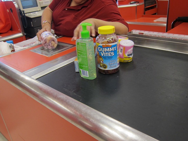 We stocked up on laundry detergent, Q-tips, toothpaste, my favorite vitamins, face wash and gum before driving to Publix to pick up our food for the week.