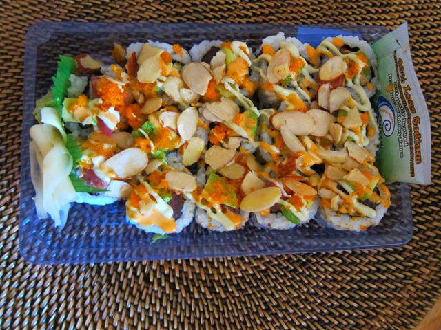 While grocery shopping, we were both hit with some serious hunger and picked up sushi for lunch.