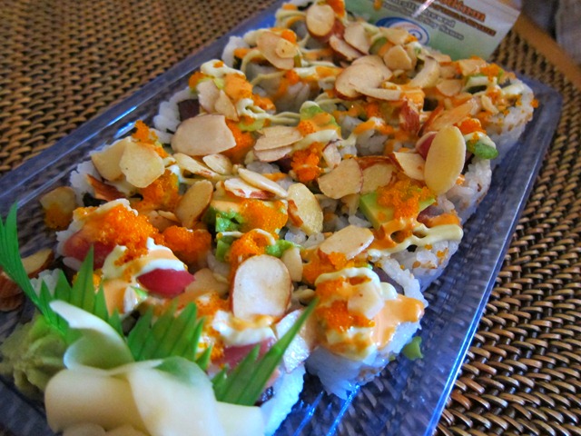 We got the Hawaiian roll which was basically a tuna roll covered in a whole bunch of fun stuff.
