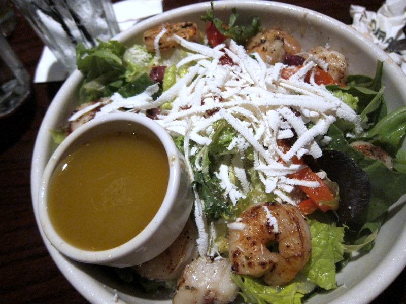 I ordered the Insalata Johnny Rocco with scallops, shrimp, olives, roasted red peppers and ricotta cheese. The scallops on the salad stole the show.