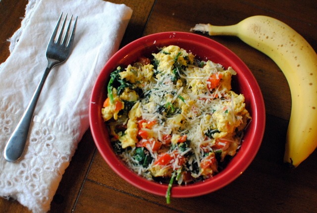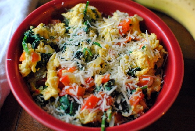 I love a good egg scramble. I used to be really creative with it and add diced apples and cinnamon to egg white- sounds weird but it was actually quite good! lol