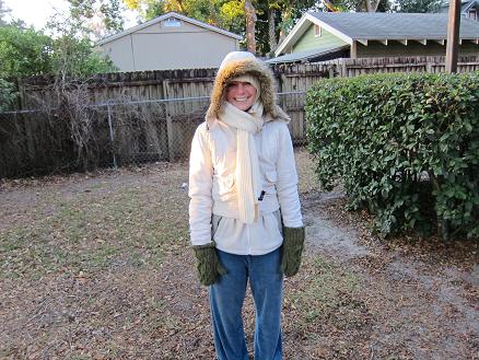 As if being filmed in my orange sweatpants on Monday wasn’t bad enough, today Ryan and I were interviewed about the unbelievably cold weather in Orlando on our morning walk with Sadie.