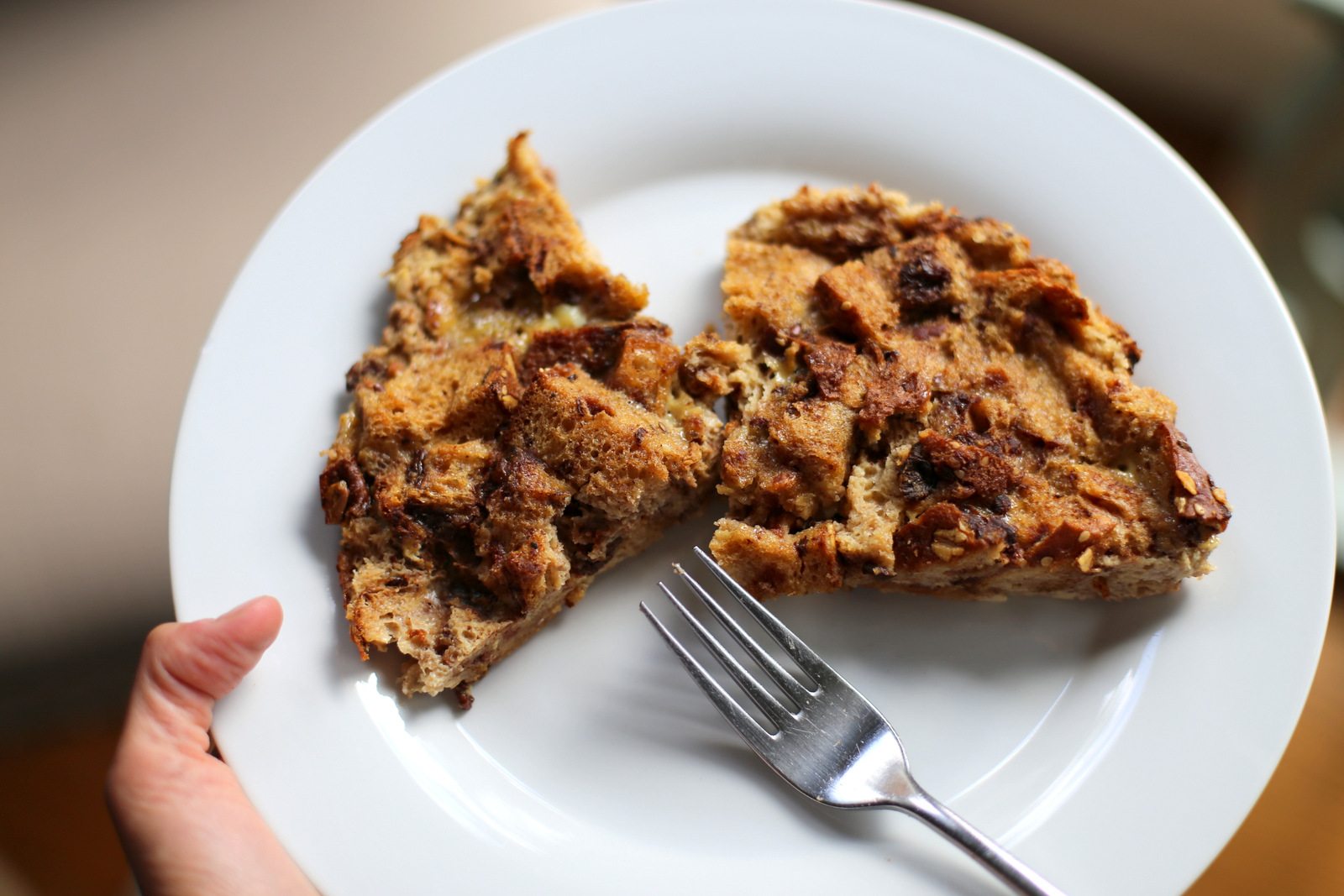 Chase has swim lessons on Wednesday evenings so a prep-ahead dinner is key! I threw together this overnight French toast casserole in the morning before the boys were up for the day so it had plenty of time to soak before I threw it in the oven after swim lessons. Breakfast for dinner is always a hit in our house so everyone enjoyed this one. I ended up making this recipe with little more than half of a loaf of cinnamon raisin Dave’s Killer Bread so I cut the recipe by 1/3 and the portions were perfect for our crew.