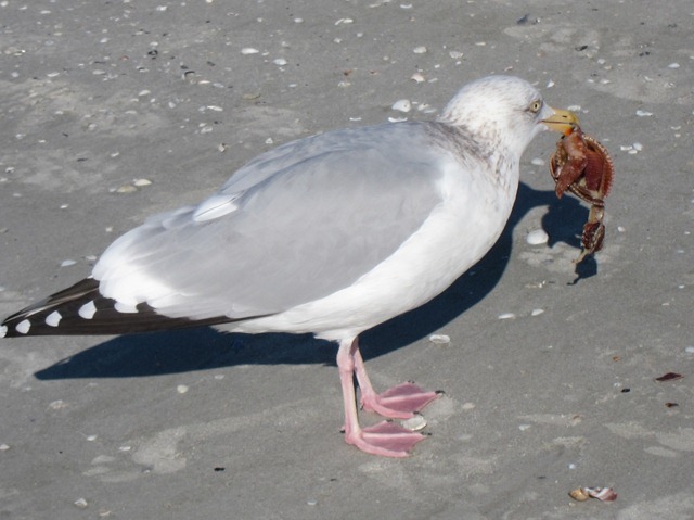 Early this morning we wandered along the beach, soaking up the sun and looking for shells. We saw seagulls enjoying breakfast as they flew high into the air with shells before dropping them so they would crack open, revealing the critter inside that they would then eat.