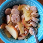 After working through the morning, I took a little breather around lunchtime to throw together a hot meal. I sautéed an onion in a bit of olive oil before chopping up two al fresco sweet apple chicken sausages and adding them to the pan. I then added thinly sliced Honeycrisp apple slices and let them cook until they softened. It was a … [Continue reading...]