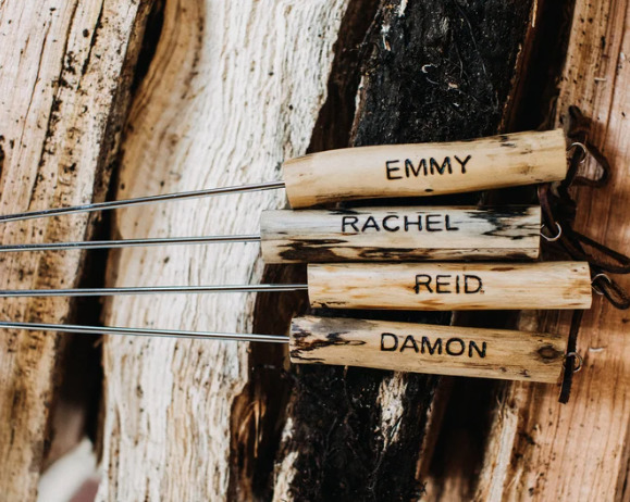 Some favorites: Custom Engraved S’mores Sticks / Custom Pine Tree S’mores Sticks (this shop makes a lot of different designs) / Driftwood Handle S’mores Sticks / S’mores Bar for Indoor S’mores / These are the s’mores sticks we have but they are currently only available via a waitlist