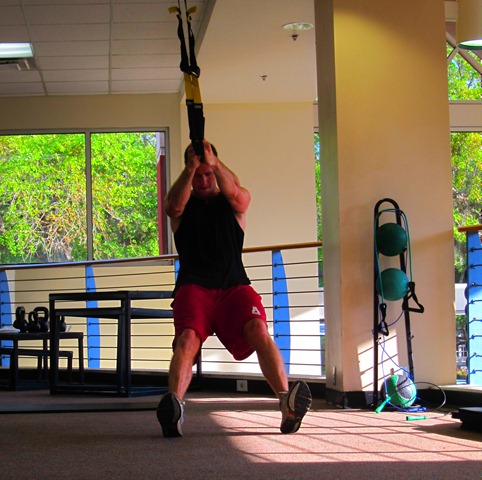 I did a total-body weights workout which I finished before Ryan was done doing super-crazy man things on his TRX straps.
