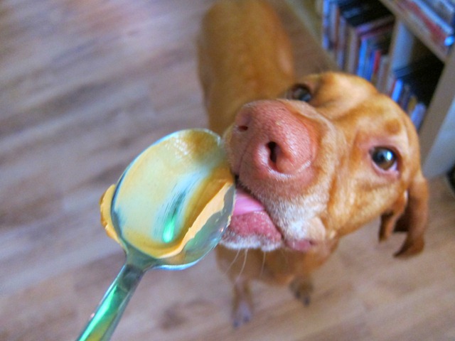 My dog sits next to me and drools everytime I open a jar of PB. I always let her lick the spoon.