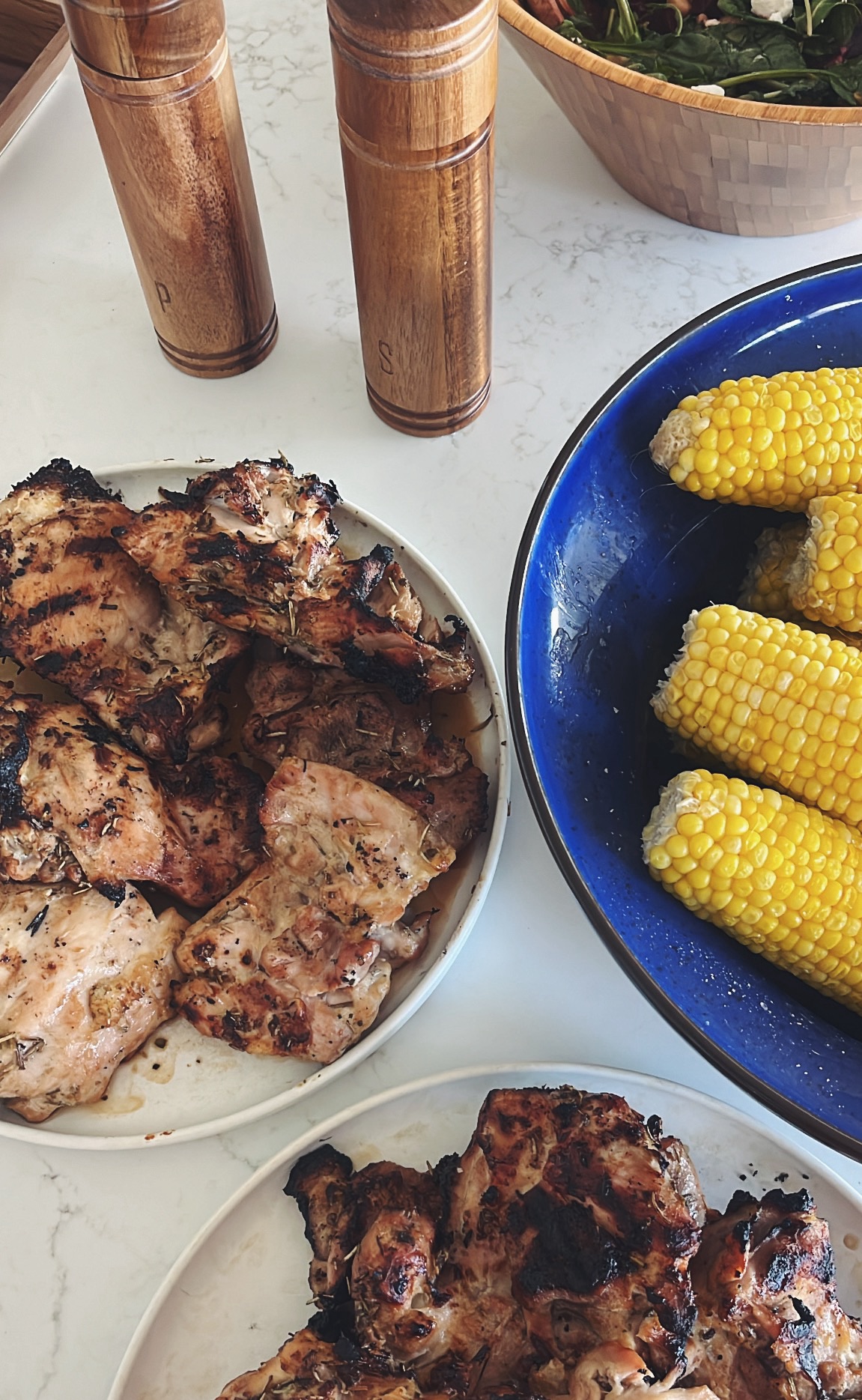 We kept the menu simple with grilled chicken thighs (using our forever favorite chicken marinade), hot dogs, an arugula and beet salad with apples, buttery corn on the cob, watermelon, pineapple and fresh rolls. Easy and tasty!