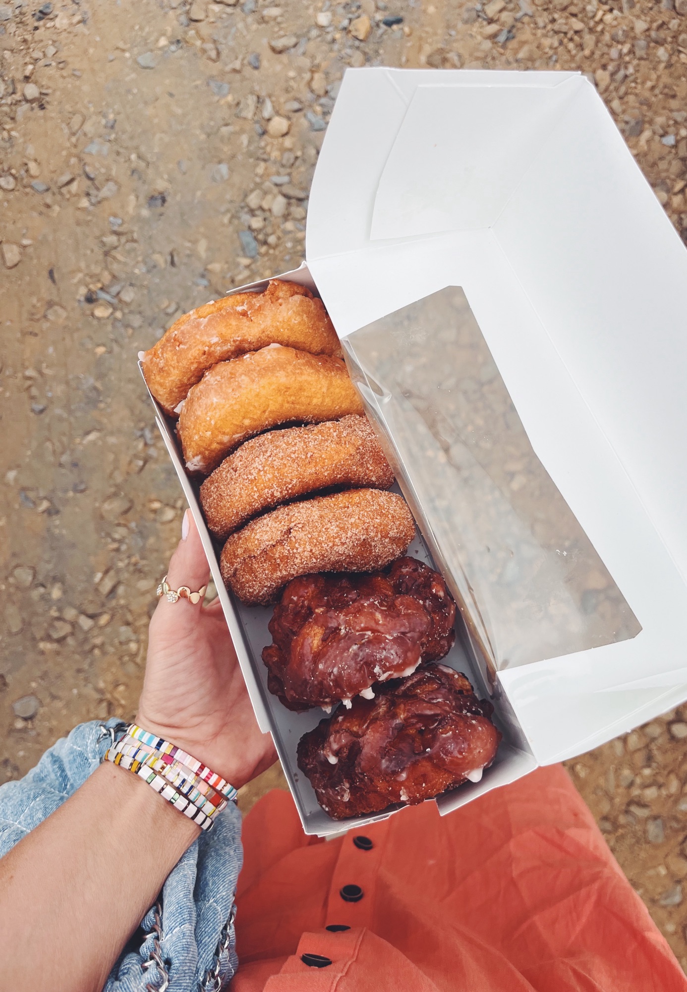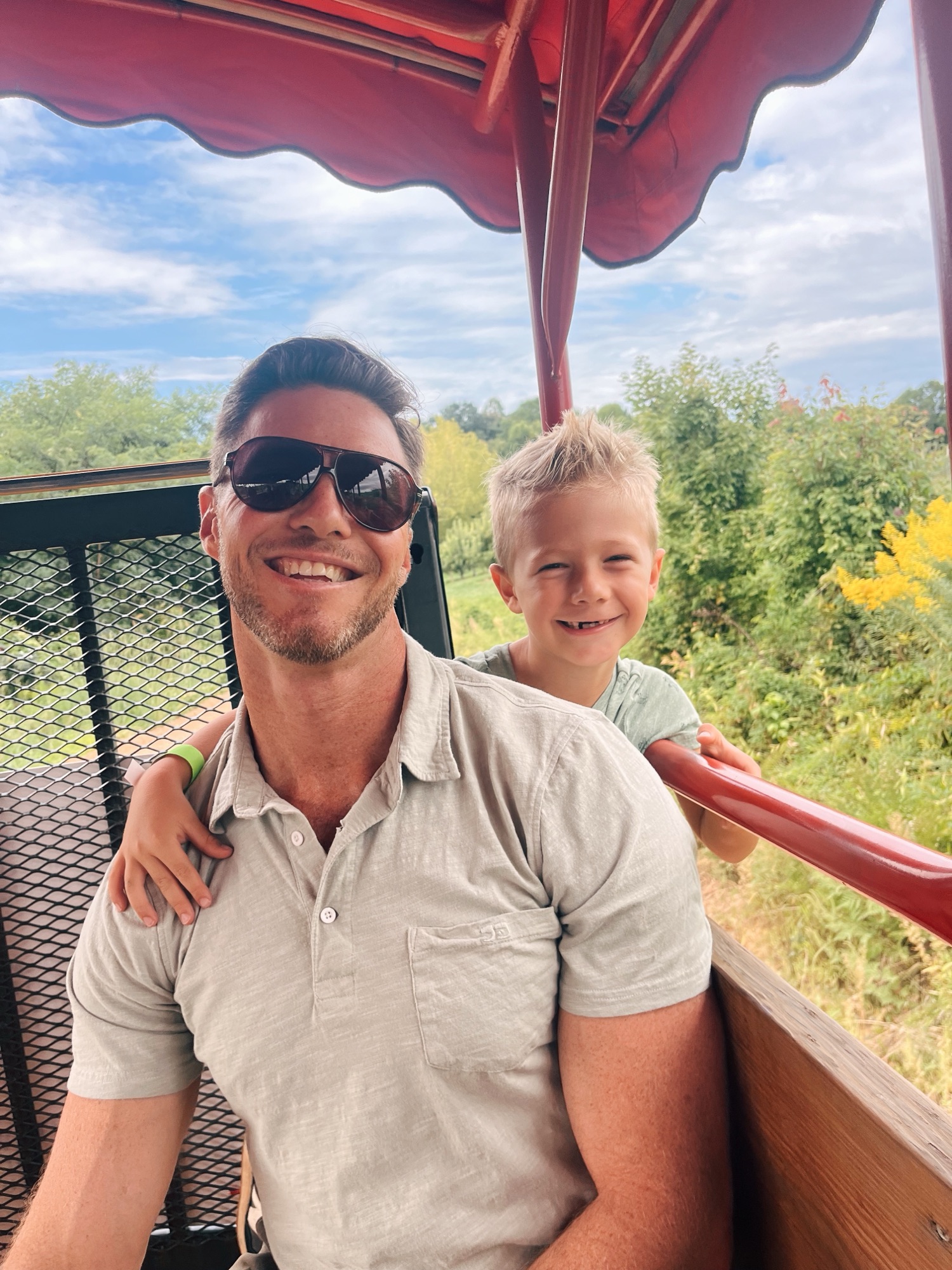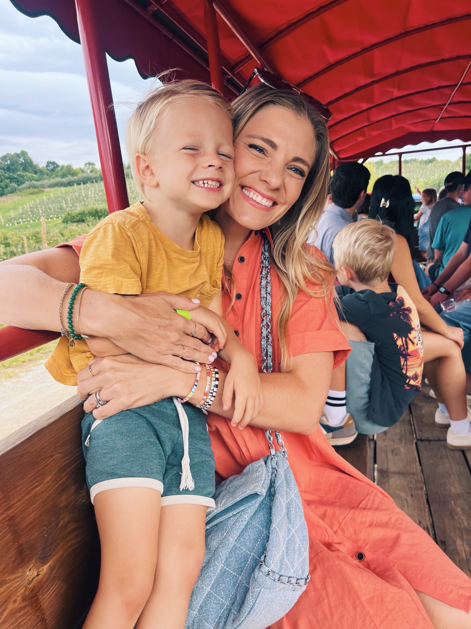 We drove about 60 minutes to Perry Lowe Orchard, a new-to-us apple orchard we will absolutely visit again in the future. The orchard is a sixth-generation apple orchard located in the foothills of North Carolina. And it had the most wonderful family feel. We arrived around 10 a.m. and the boys immediately sprinted toward the jumping pad and playground.
