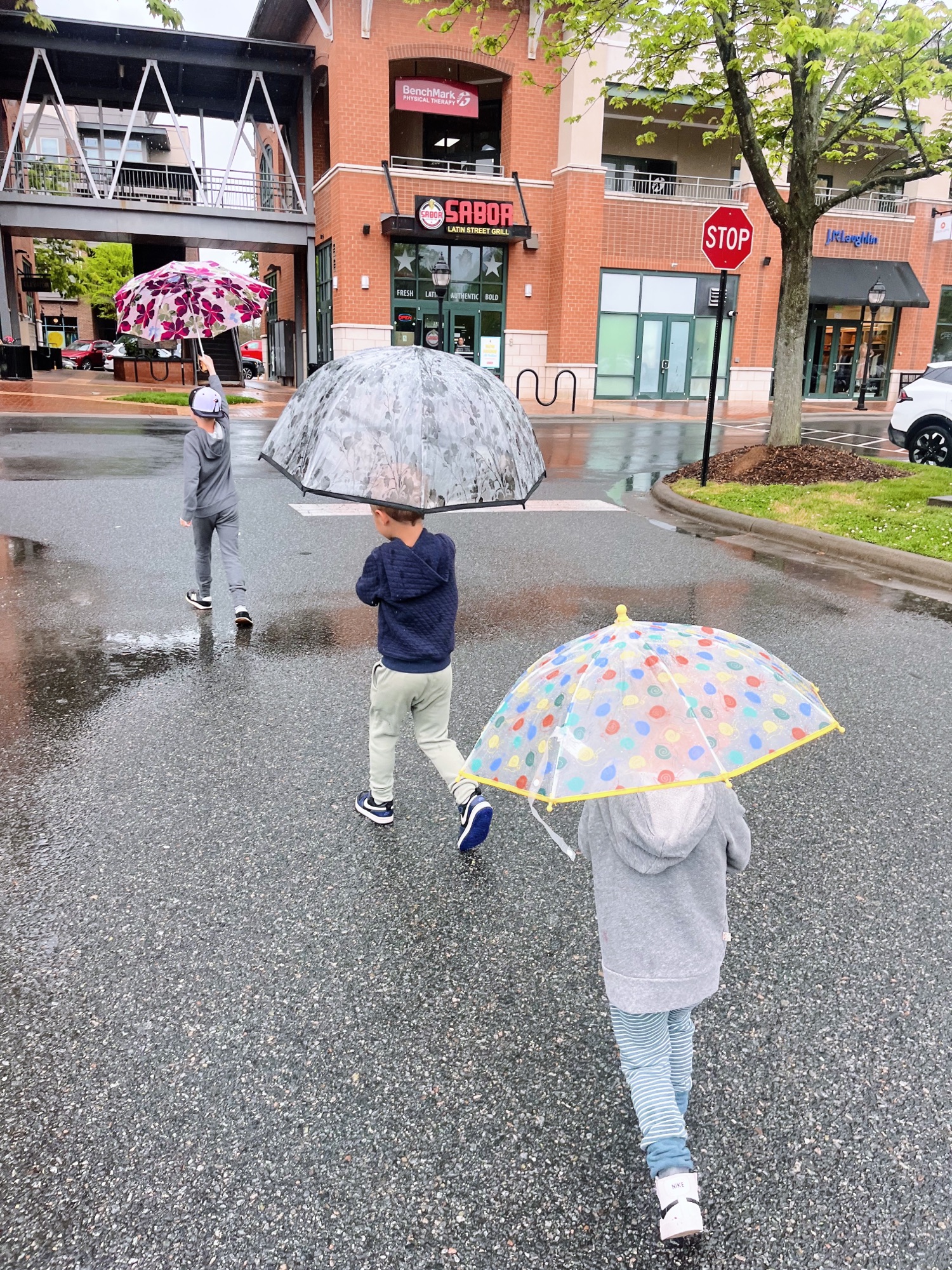 Next up on the agenda was Chase’s school pickup. It was still raining — yesterday was honestly pretty dreary from start to finish — but thankfully the downpour lessened to a drizzle and eventually faded as the afternoon went on.
